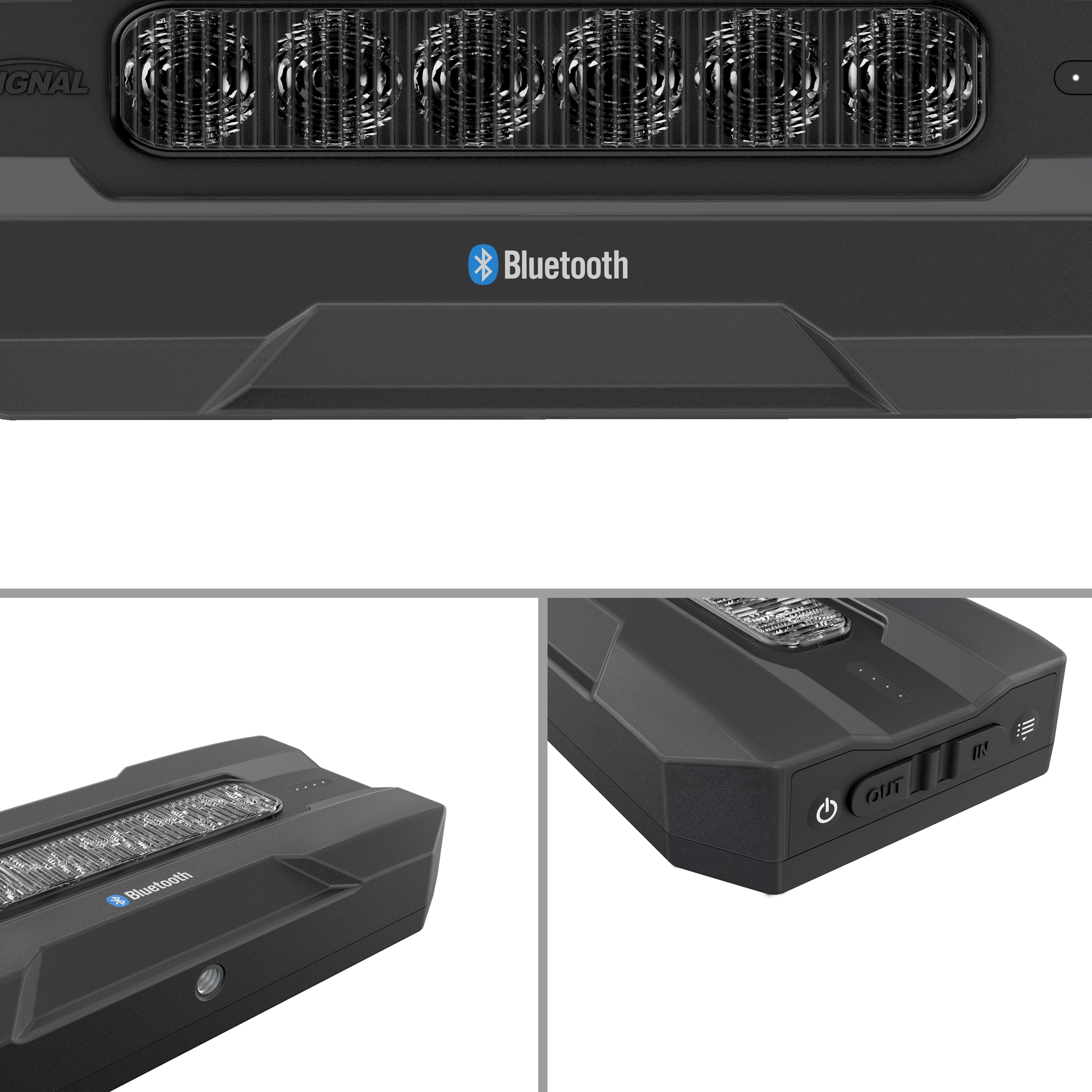 ‘-Three-in-one warning light, floodlight, and power bank -Bluetooth compatible; controllable via app with the smartphone -Led colors: Warning light: Amber/Red/Blue/Red Blue split color; Flood light: White -5-year warranty, 1-year warranty for battery -Three 1/4 inch nut adapters give possibilities to various bracket options to meet different scenarios -Waterproof USB Type-C interface during charging and discharging